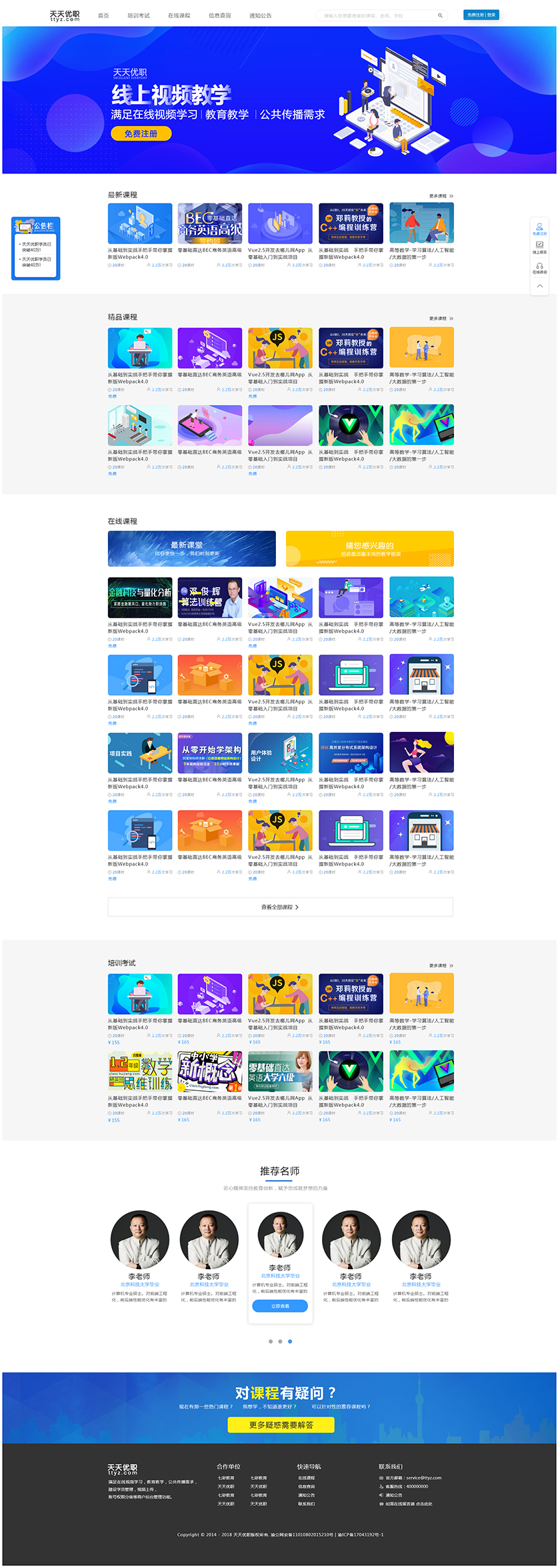 Project Description 满足在线视频学习,教育教学,公共传播需求, 建设学员管理,视频上传, 账号权限分级等商户后台管理功能 Official website address 秀山http://tiantianyouzhi.com/ I want to share